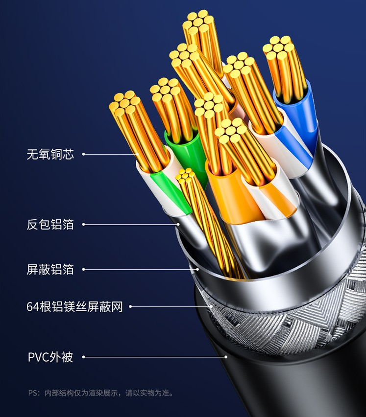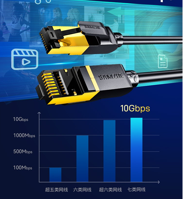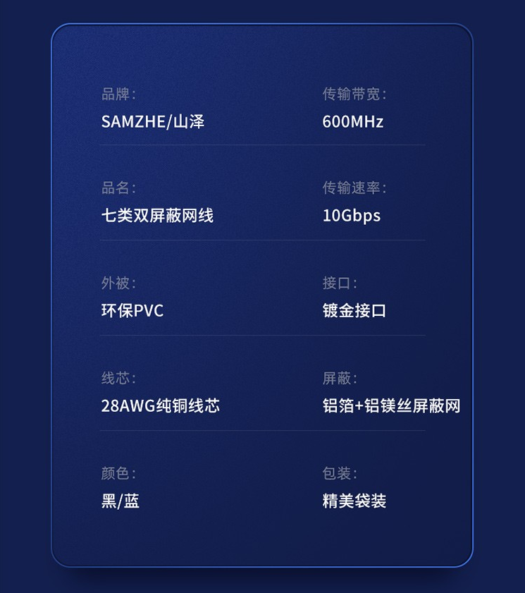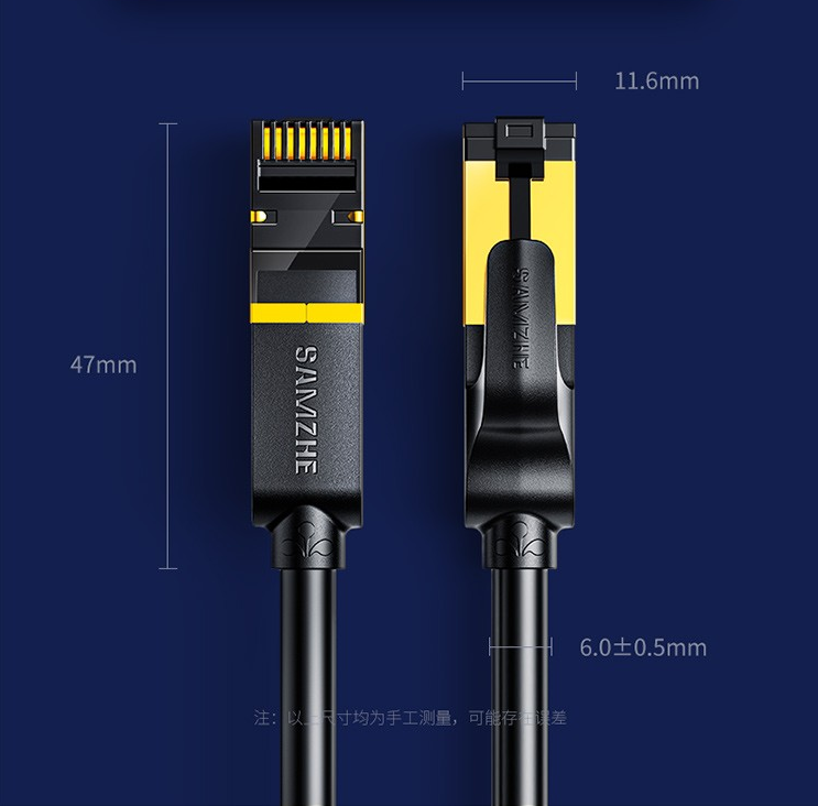 網(wǎng)絡(luò)連接設(shè)備山澤(SAMZHE)工程級萬兆七類CAT7純銅鍍金雙屏蔽超高速網(wǎng)絡(luò)跳線黑色20米CAT-720H/根