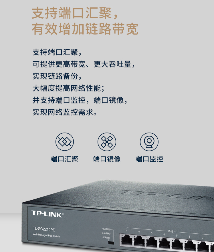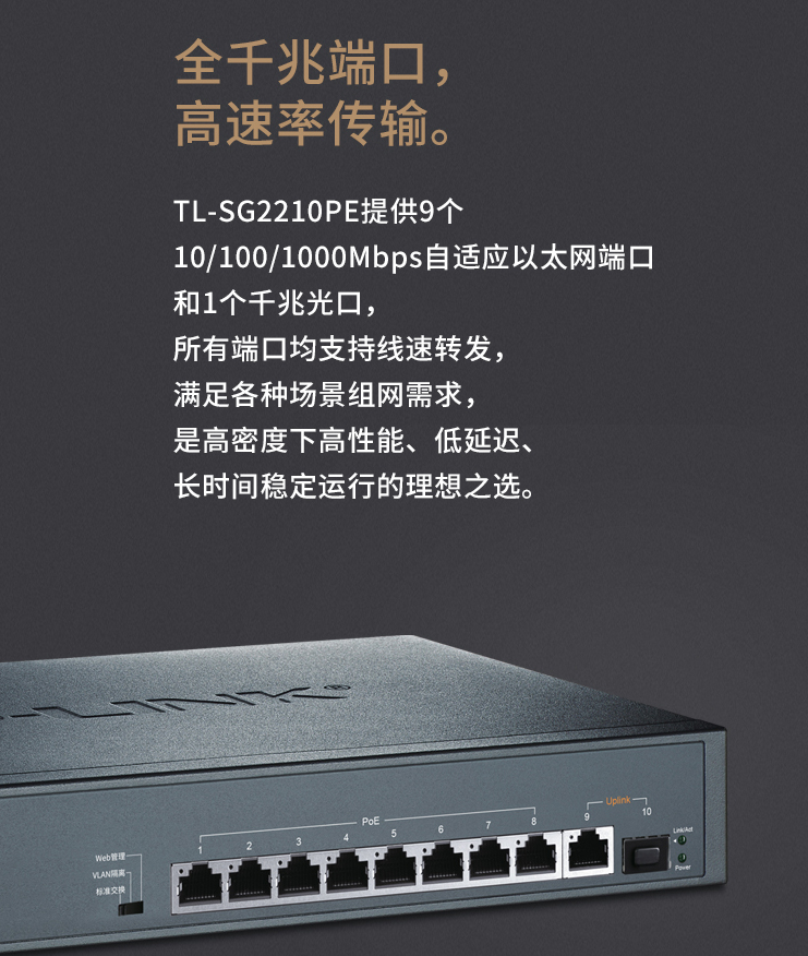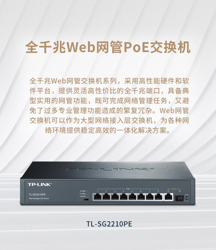 以太網(wǎng)交換機普聯(lián)/TP-LINK10口全千兆Web網(wǎng)管 云管理PoE交換機 (8PoE口+1千兆口+1千兆SFP) TL-SG2210PE/臺