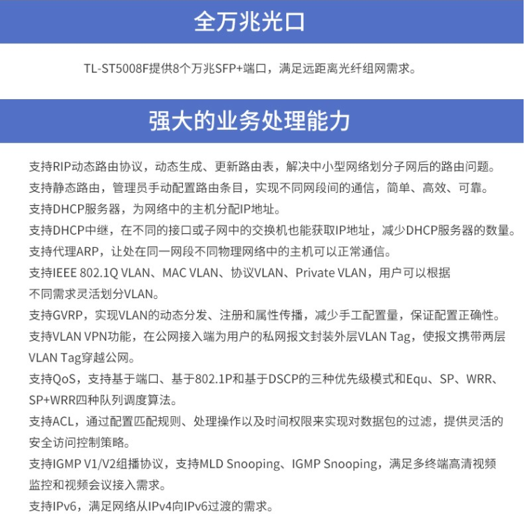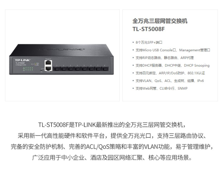 以太網(wǎng)交換機(jī)普聯(lián)/TP-LINK8口萬兆光口企業(yè)級(jí)交換機(jī)Web網(wǎng)管 TL-ST5008F /臺(tái)