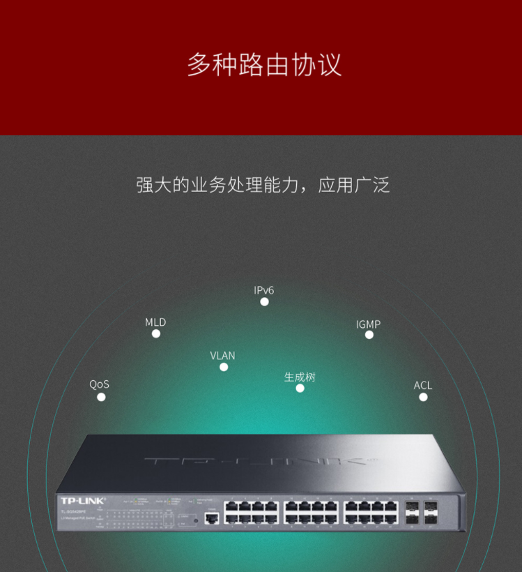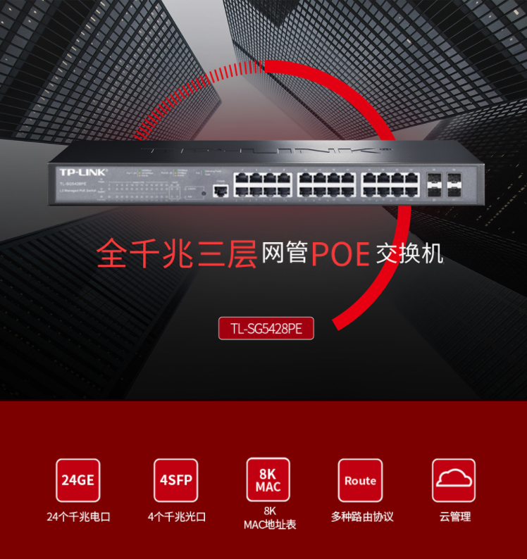 以太網(wǎng)交換機普聯(lián)/TP-LINK24口全千兆4個SFP光纖口企業(yè)網(wǎng)絡(luò)匯聚三層網(wǎng)管POE交換機TL-SG5428PE/臺