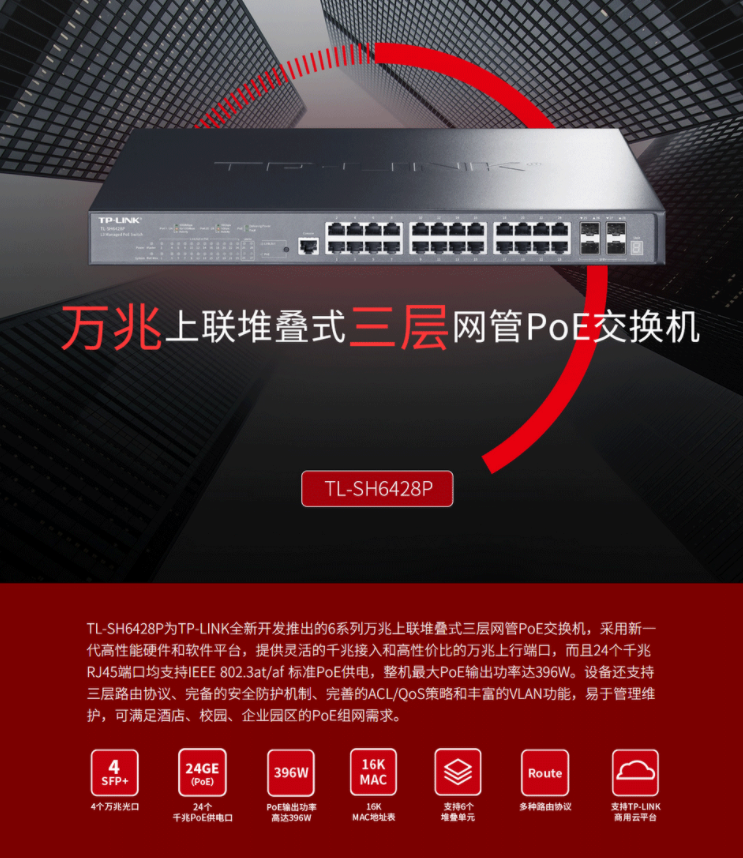 以太網(wǎng)交換機普聯(lián)/TP-LINK企業(yè)級商用核心交換機 支持VLAN 24口千兆TL-SH6428P/臺