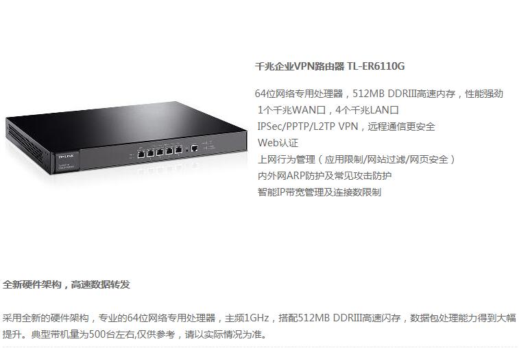 路由器普聯(lián)/TP-LINK企業(yè)級 千兆VPN路由器 防火墻 AP管理TL-ER6110G/臺