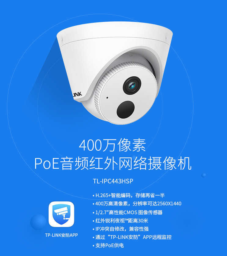 監(jiān)控攝像機普聯(lián)/TP-LINK400萬高清POE監(jiān)控攝像頭TL-IPC443HSP/臺
