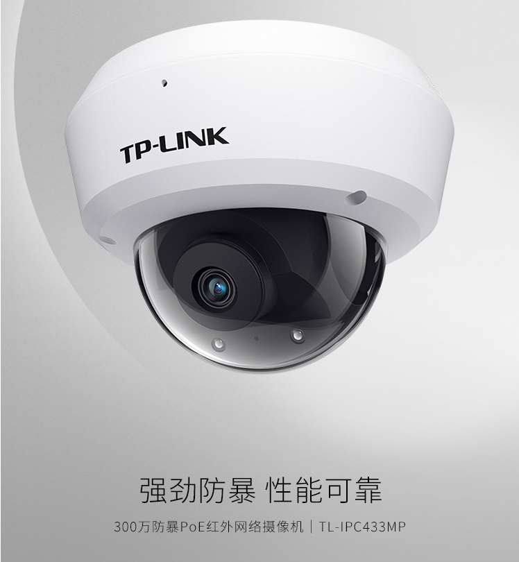 監(jiān)控攝像機普聯(lián)/TP-LINK300萬防暴紅外網(wǎng)絡(luò)攝像機H265 DC電源半球高清視頻TL-IPC433M/臺